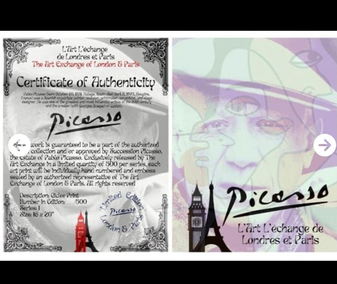 Authorized Limited Edition production by The Art Exchange of London & Paris. Picasso Collection Size: Large (16x20) Limited Edition 1 of 500 Hand Embossed & Numbered Archival Museum Grade Paper Reverse Stamped Certificate of Authenticity